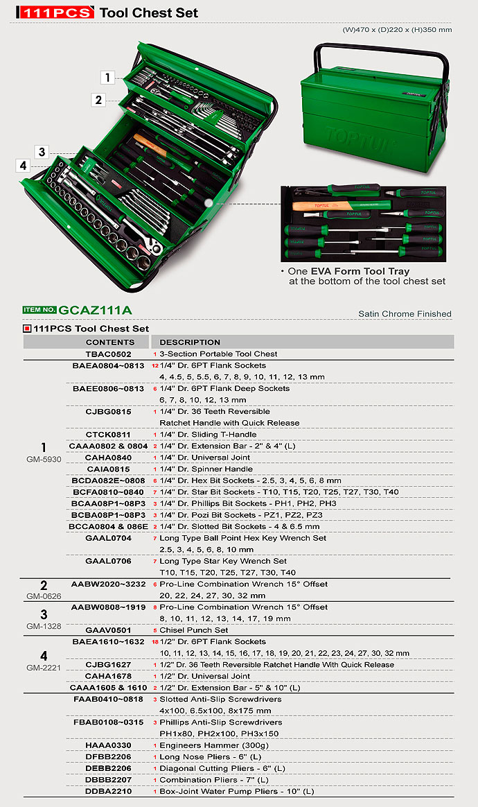 Hộp đồ nghề 111 chi tiết toptul GCAZ111A