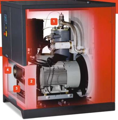 Một quạt lớn với hiệu năng cao và két giải nhiệt dầu/gió lớn giúp máy nén hoạt động tốt trong mọi điều kiện nhiệt môi trường cao.